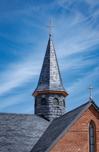 From emergency church roof repair to complete restoration projects, we provide a full range of church roofing services. Our capabilities include metal church roofing, shingle church roofing, slate church roofing, and specialty materials for historic buildings.